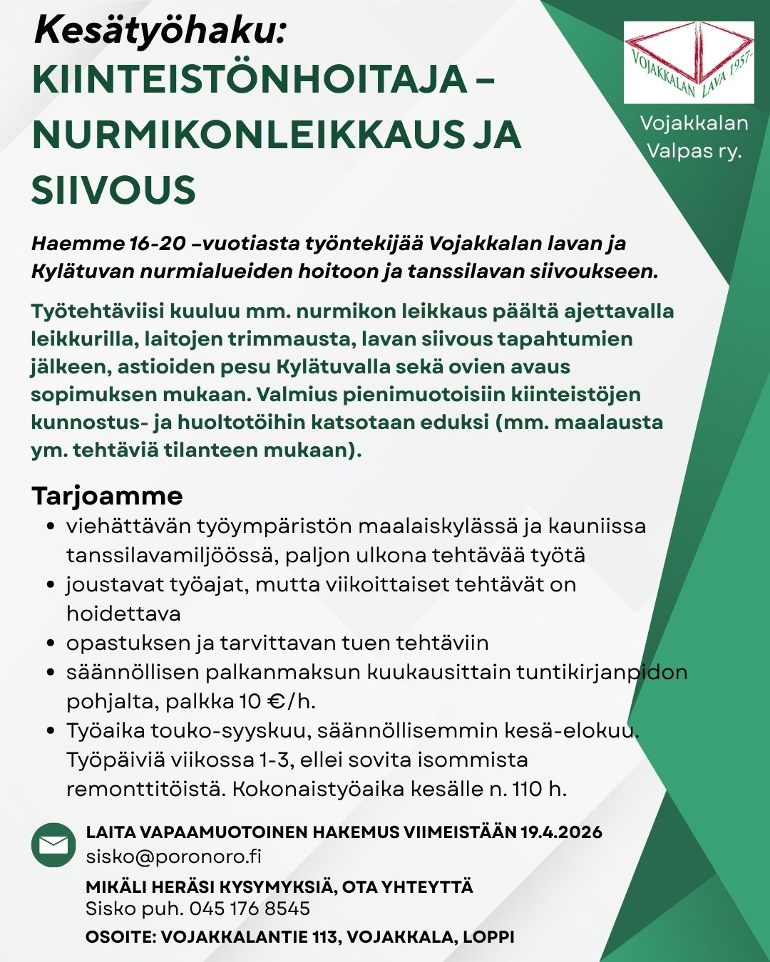 - Nuori: hae kesätöihinVojakkalan lavalle!