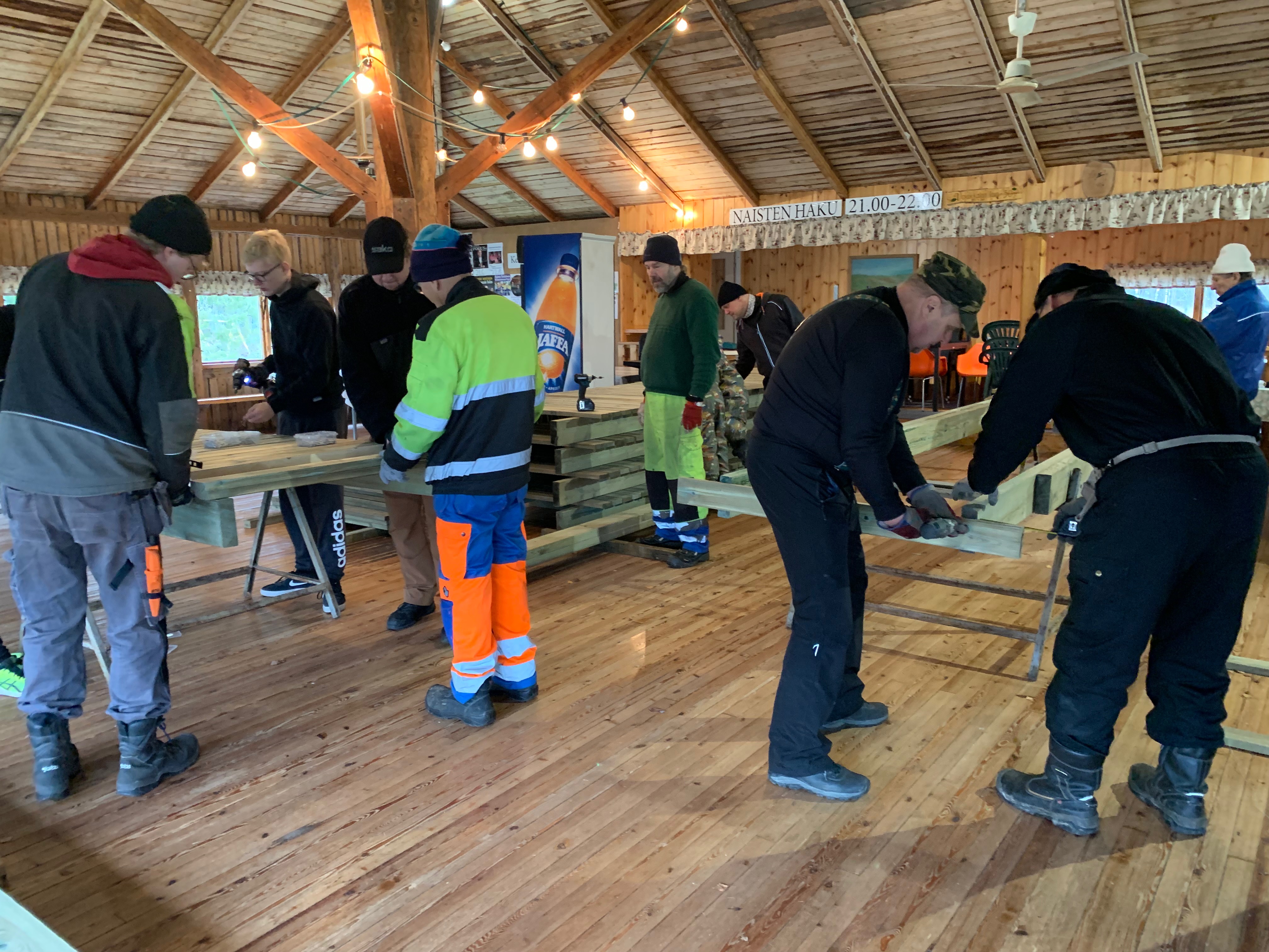 Uimarannan kunnostusprojektissa tekemistä oli monen ikäisille ja taitoisille. Uudet laiturielementit rakennettiin talkoilla yhdessä päivässä lokakuussa 2021.