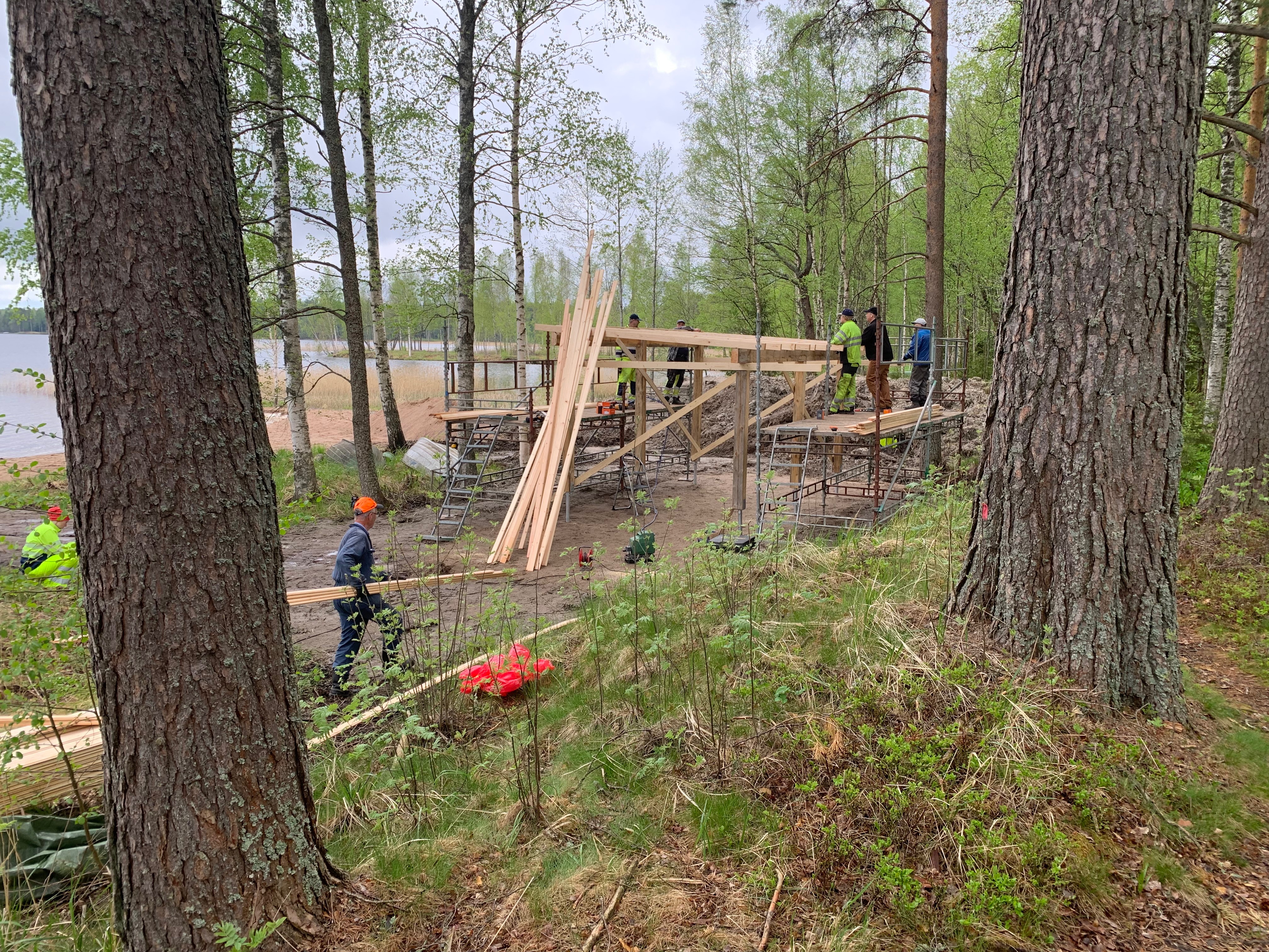 Työt alkoivat kesällä 2021 kaislikon niitolla ja olemassa olevien rakennusten maalaamisella. Ajanmukaiset kompostikäymälät hankittiin ja asennettiin. Kun vesijättömaan lunastusprosessi saatiin päätökseen päästiin loppukesällä raivaamaan rantaviivan puustoa ja tekemään kevyt, mutta tärkeä rantaruoppaus, jossa ruovikoihin vuosikymmenten aikana kertynyt muta siirrettiin pois. Rantaan tuotiin uudet hiekat. Vielä loppusyksystä rakennettiin talkoilla uudet laiturielementit odottamaan alkavaa kesää.