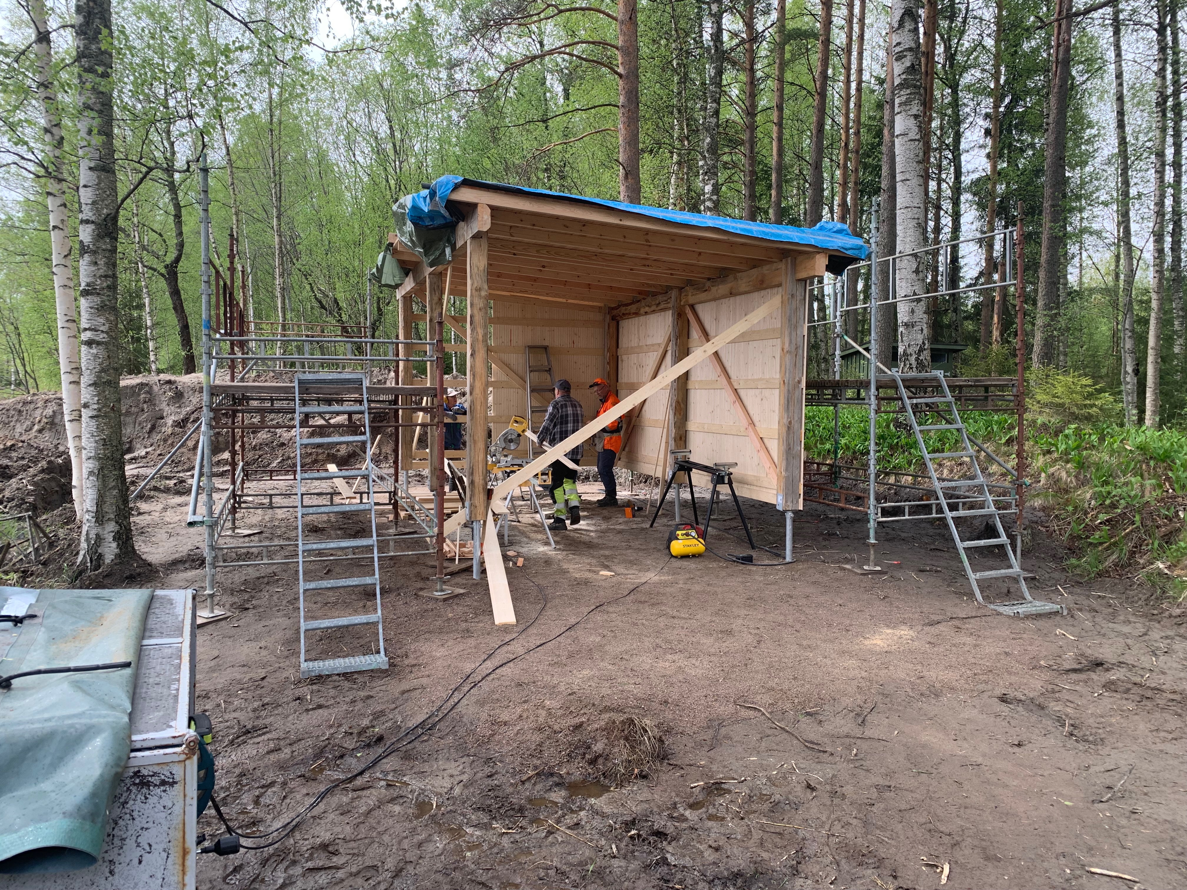 Rantaan päästiin tekemään grillikatosta toukokuussa 2022. Parin päivän yhteistalkoissa saatiin runko ja seinät pystyyn, pienemmällä porukalla tehtiin katto. Kesän aikana katos viimeisteltiin ja maalattiin sekä muurattiin tänne grilli.