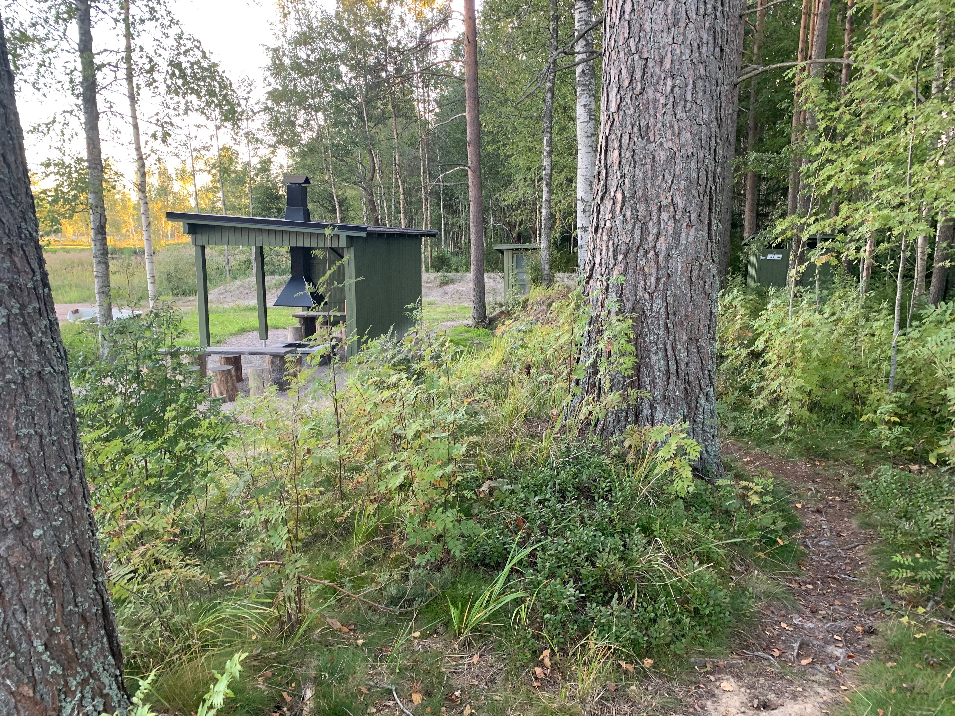 Rantatöyrään suojassa, uimarannan äärellä, on kaksiseinäinen grillikatos pöytäryhmineen.