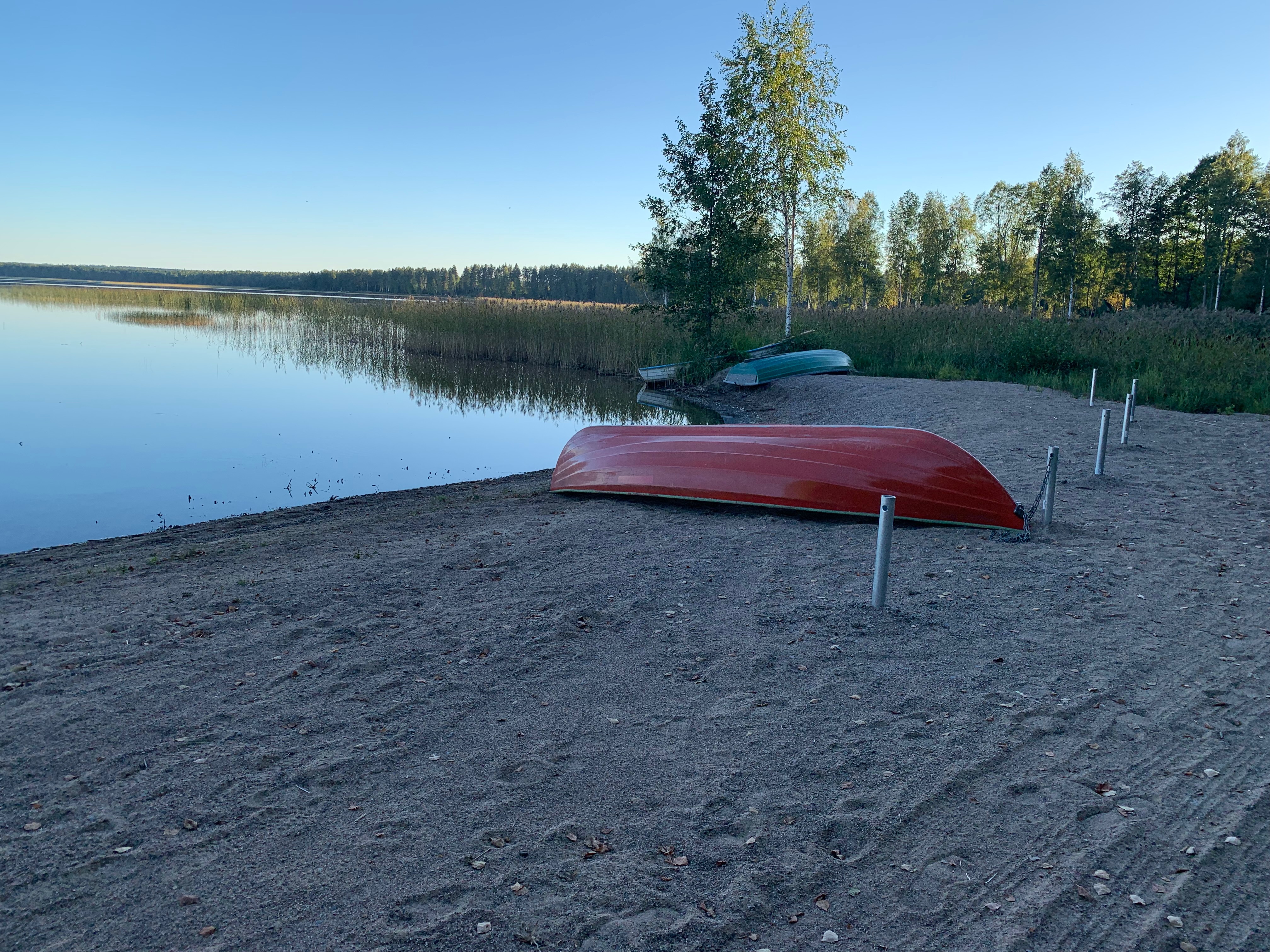 Rannasta löytyvät pukukopit, ajanmukaiset kompostikäymälät ja grillikatos. Veneille on asennettu kiinnitystolpat oikeaan laitaan.