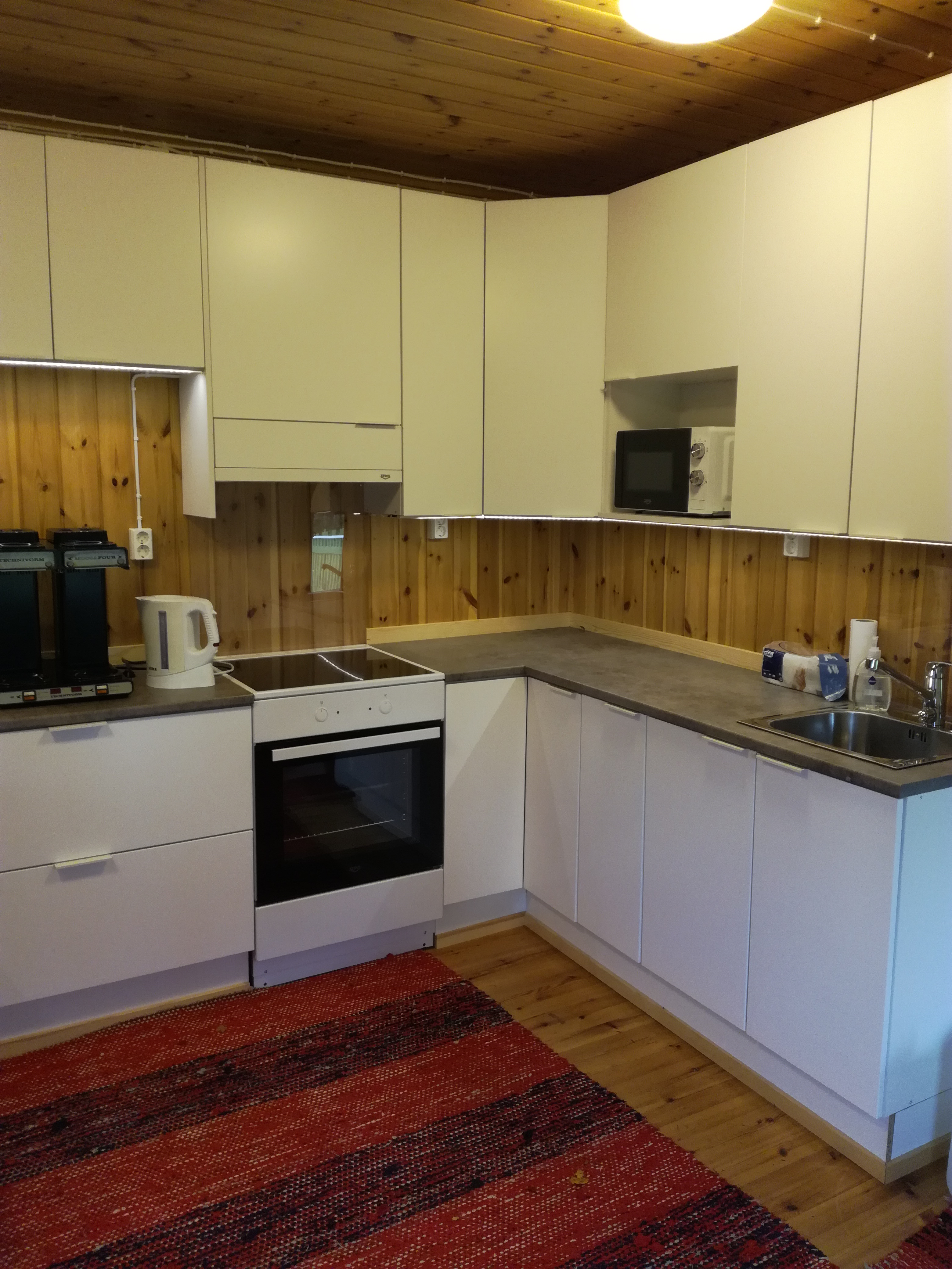 Keittiö on kunnostettu kesällä 2020 vastaamaan nykyajan tarpeita. Varustukseen kuuluu kahvin- ja vedenkeittimet, korkea jääkaappi ja pakastin, mikrouuni sekä induktioliesi. Vesi tulee hanasta (myös lämmin vesi), mutta on tuotava säiliöön erikseen.